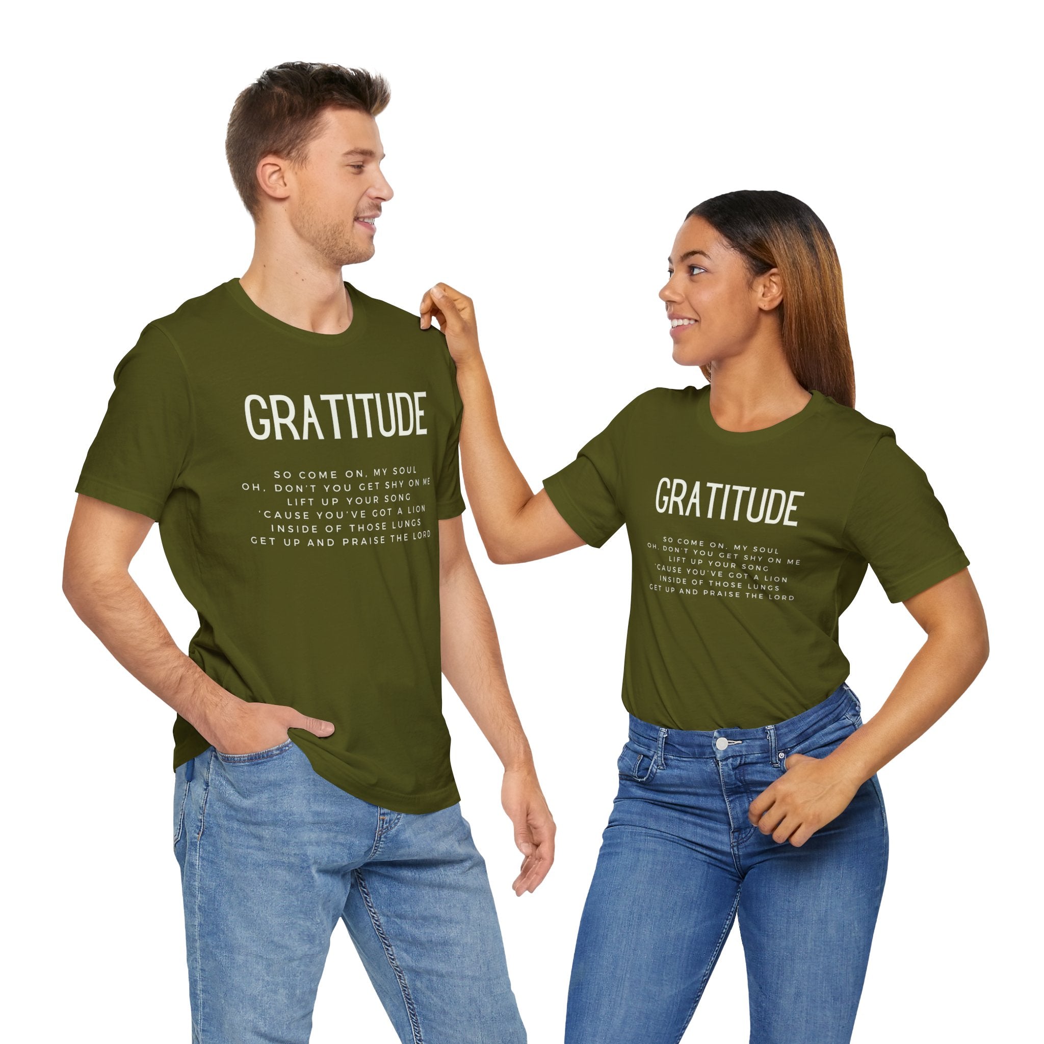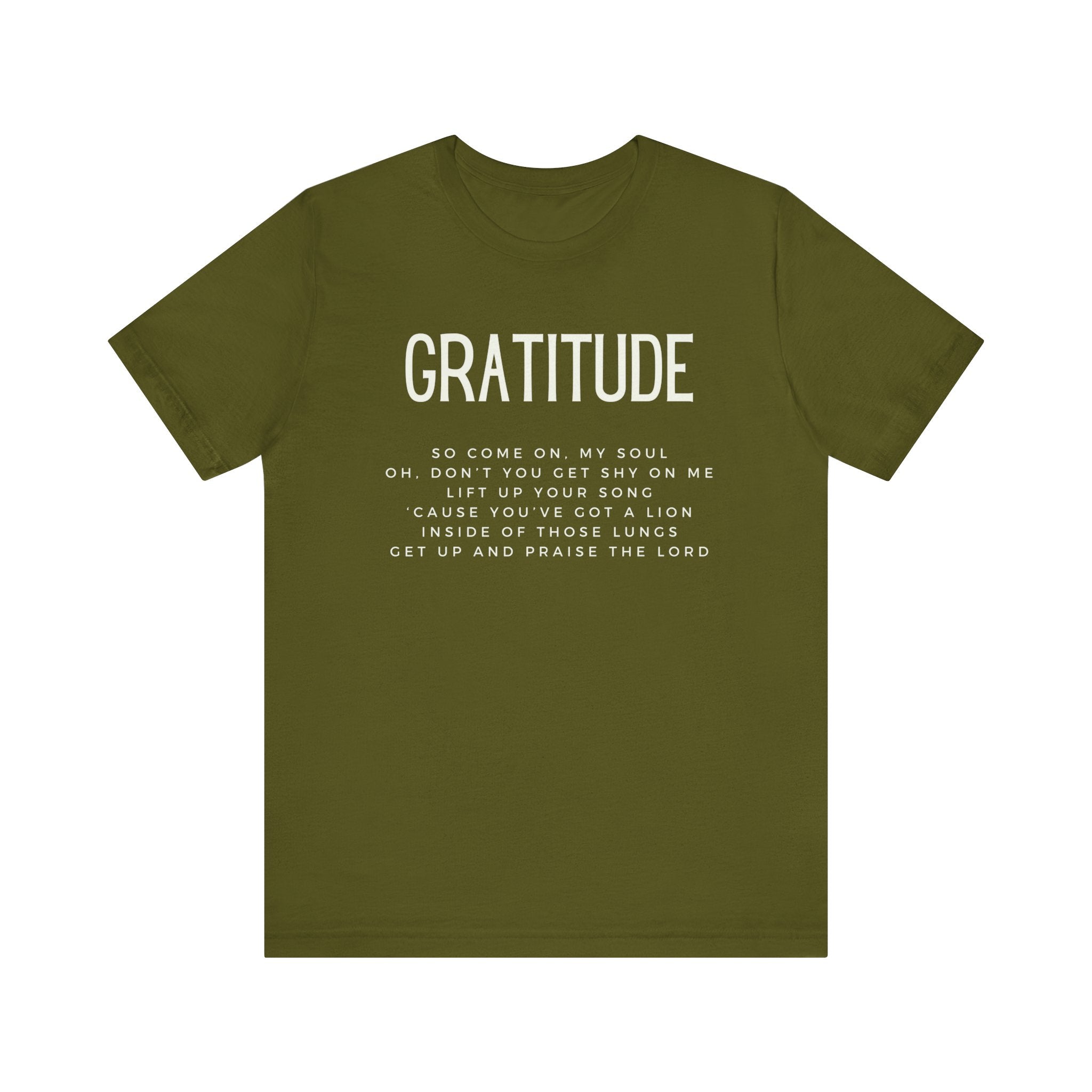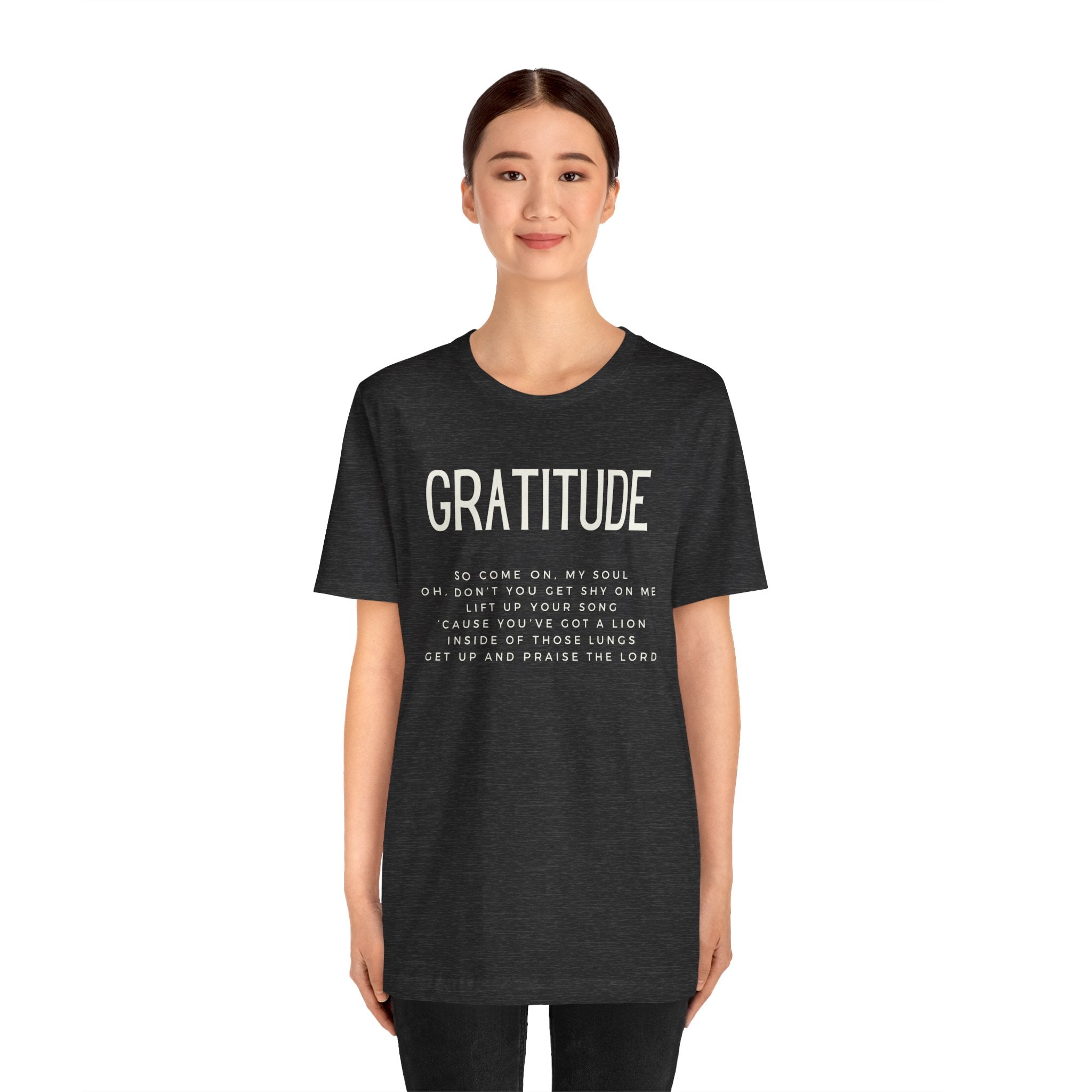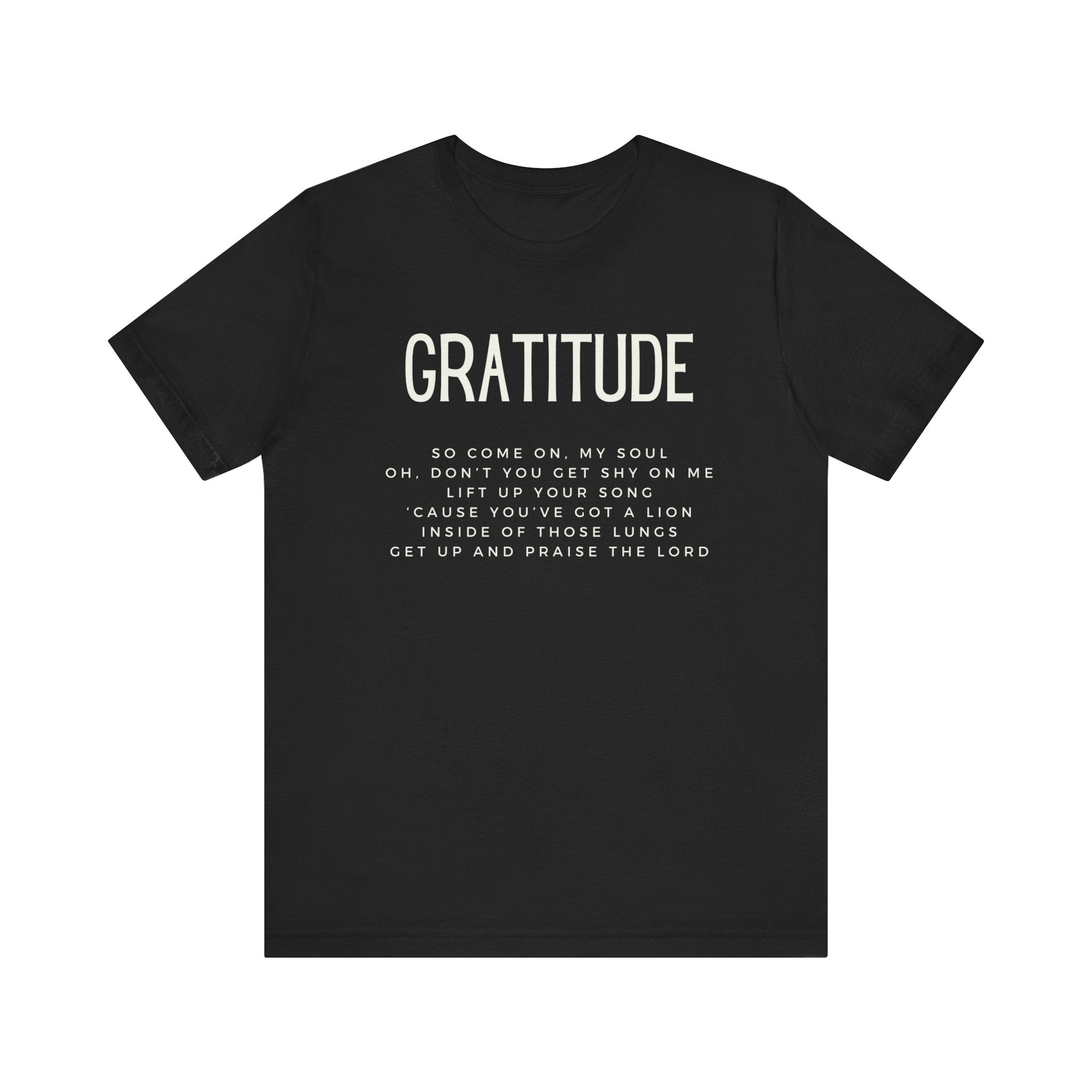 Gratitude is the perfect T-shirt to show how thankful you are that you have a Heavenly Father that loves and cares for you! This Shirt has the bridge to the Maverick City Song Gratitude on the front and the Chorus of the song on the back!