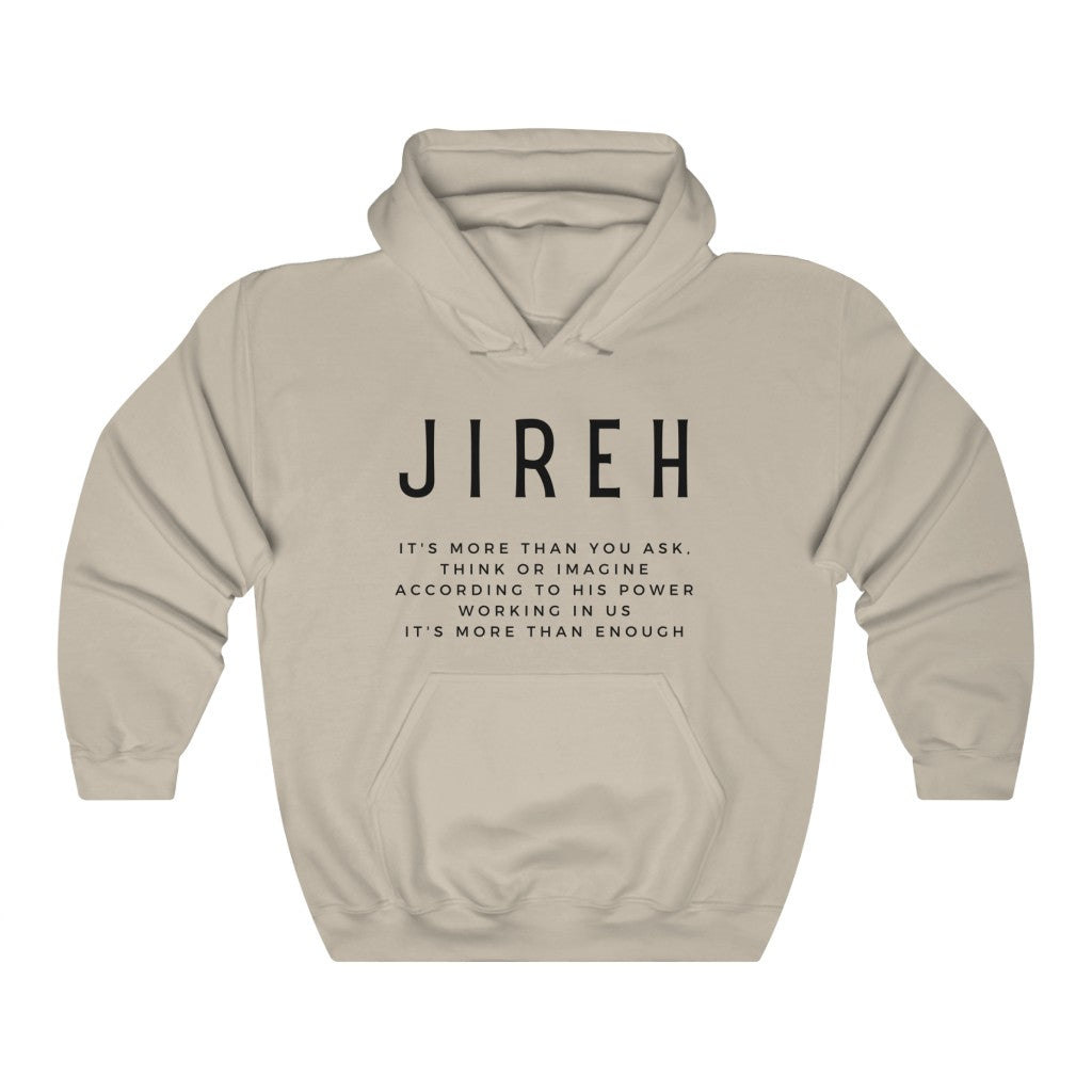 Jireh You Are Enough is a great way to express your love for the one who is your Creator and Heavenly Father! This Hoodie is available in colors black with white lettering, white with forest green lettering and forest green with white lettering, take your pick! Get today with FREE SHIPPING IN THE USA!