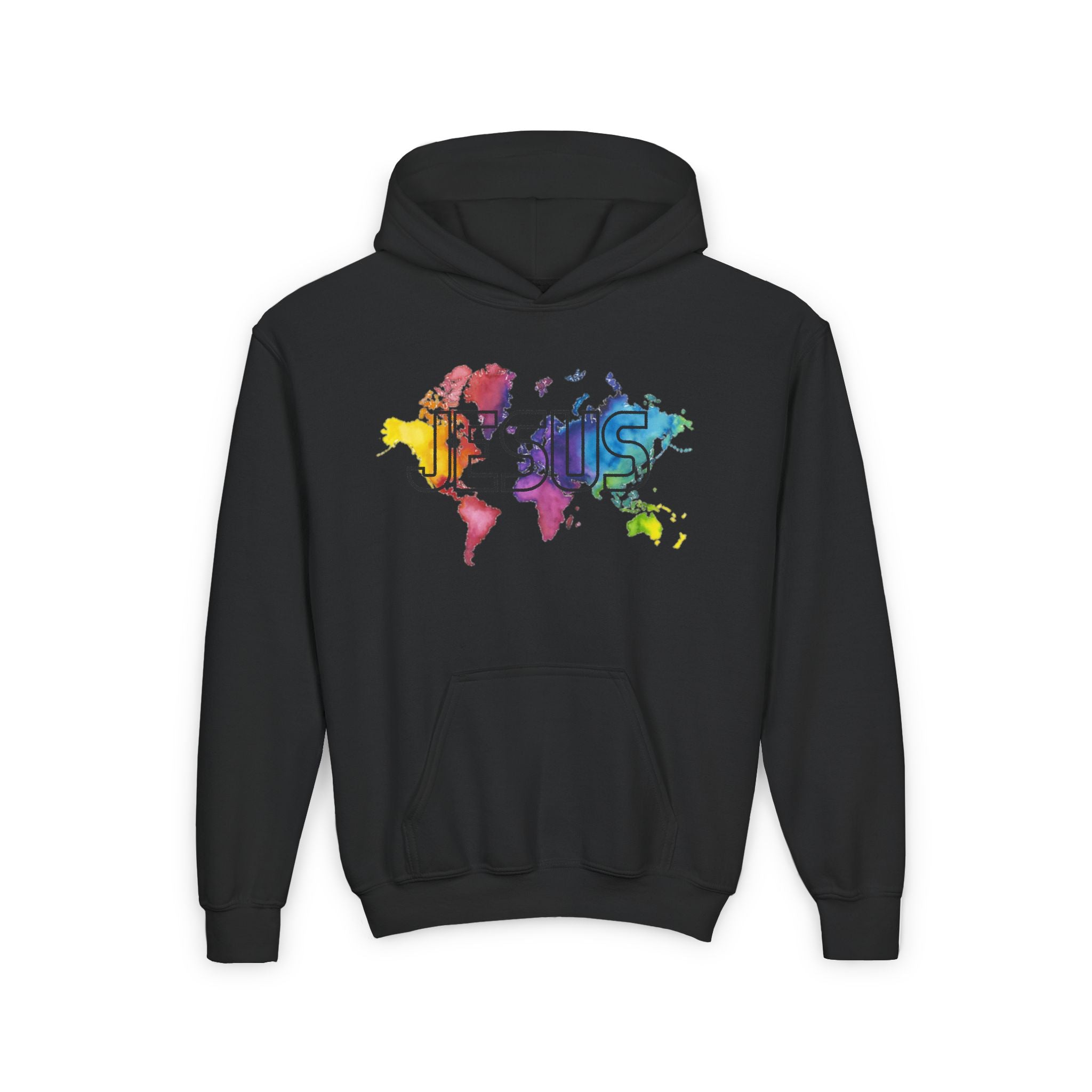 This beautiful Jesus world map hoodie is one of the best world map hoodies out with the colorful water paint picture of the continents and the name above all names hidden in the picture! It's a beautiful example of the love of God given to the world by his son Jesus Christ!