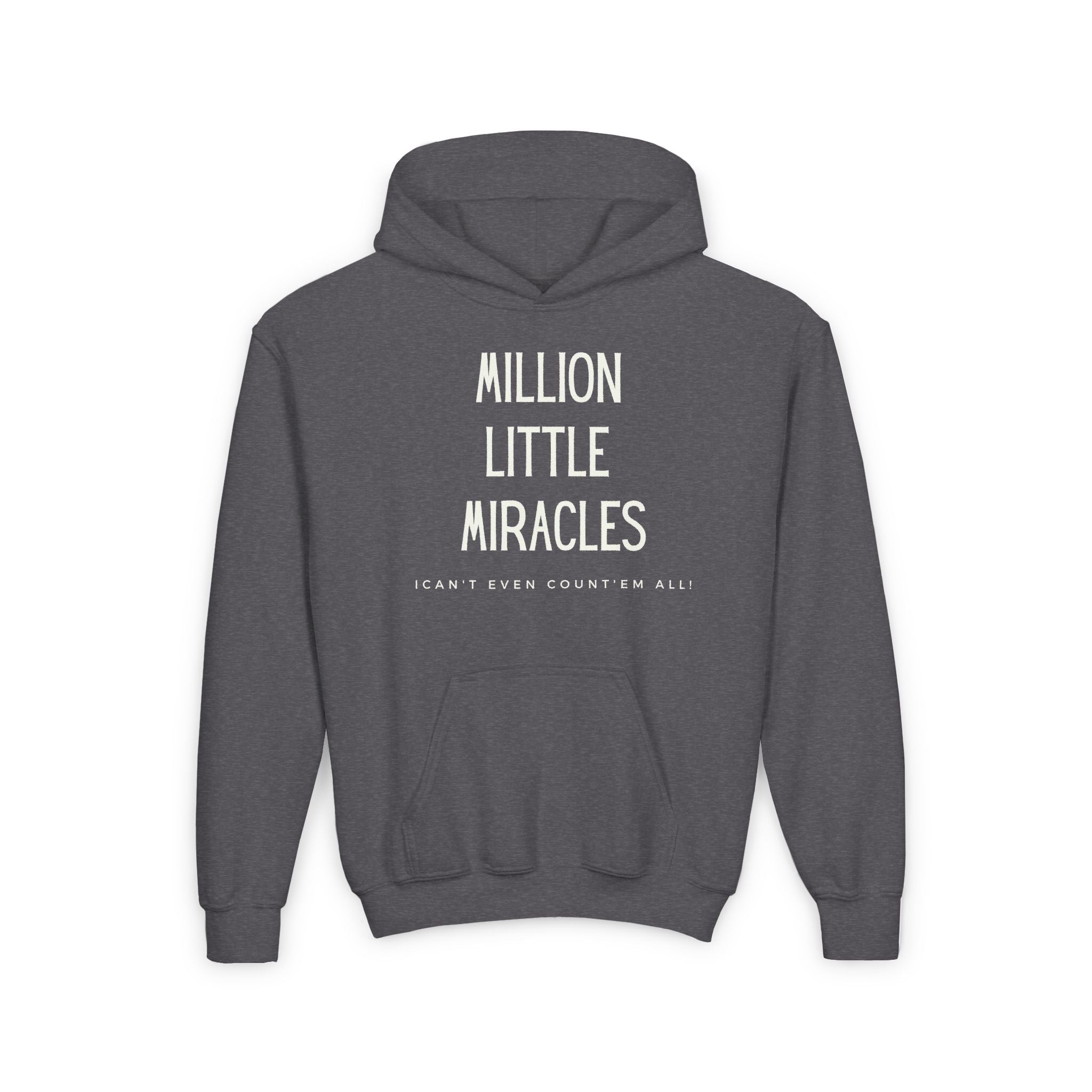 Kids Million Little Miracles Hoodie! Who can count the miracles of Yahweh!? The lord of lords, the king of kings, and the one and only God has made himself known to us by the many miracles shown to us in the days of old, as well as in our own lives! Truly I tell you he lives and is well!